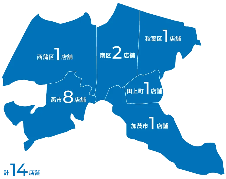 | 燕市 | 本店、仲町支店、中央通支店、南支店、吉田支店・南吉田支店、小池支店、小中川支店 | |